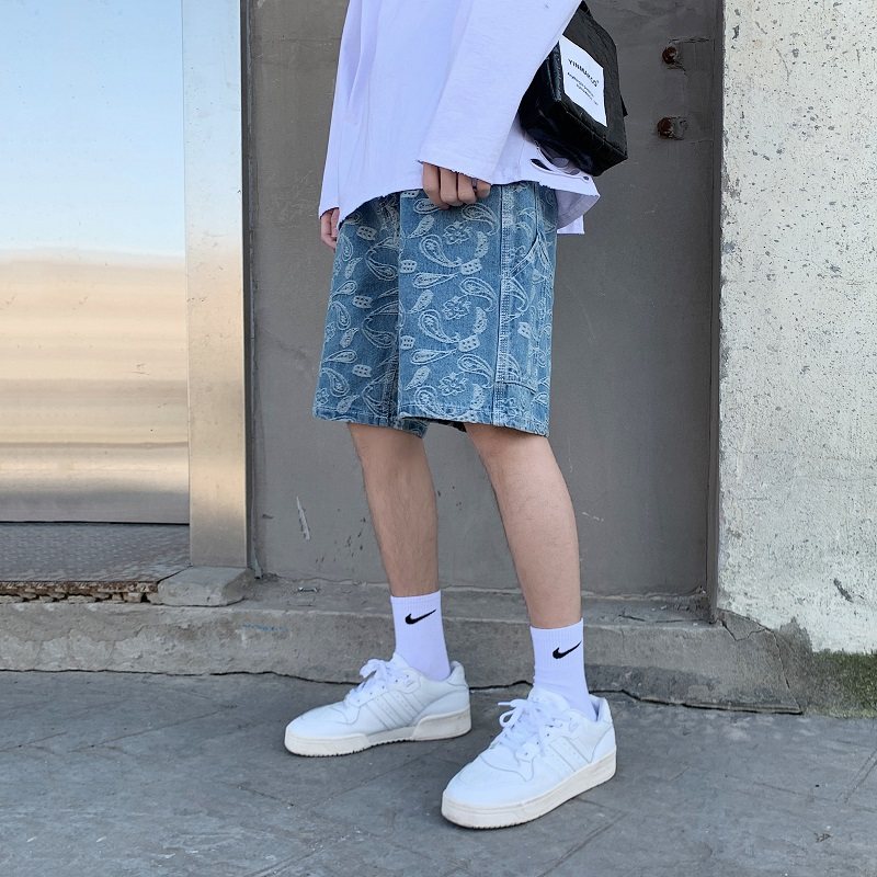 Denim Shorts Men's Summer Ultra Fire Ins loose Korean version Student boomer hip hop bf 50% Thin Casual Pants