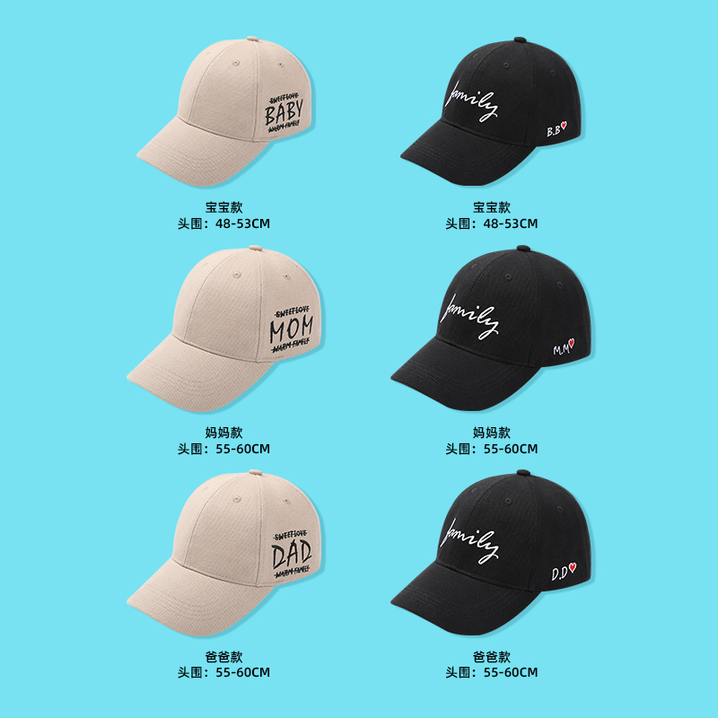 Baby size (head circumference 48-53cm) Mom size (head circumference 55-60cm) Dad size (head circumference 55-60cm)
