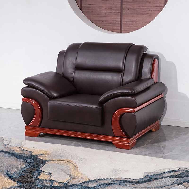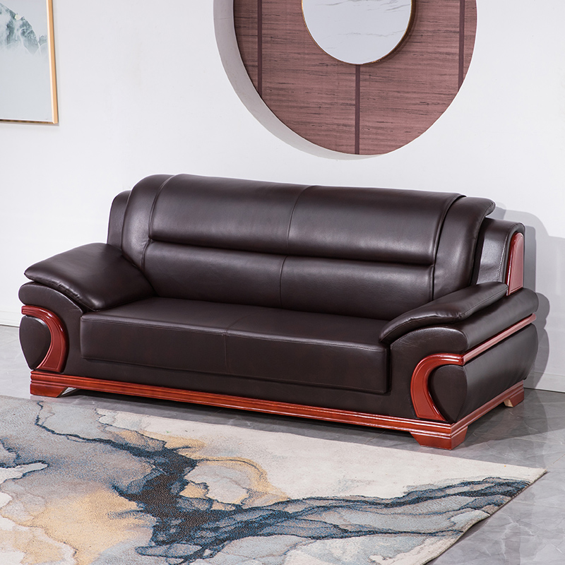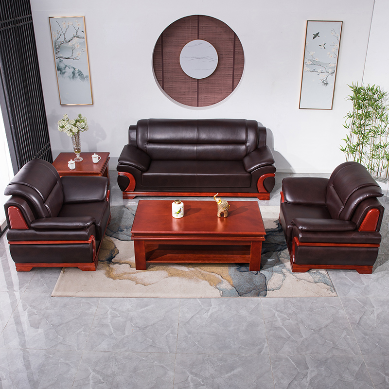 Office sofa Modern minimalist Guests Reception Sofa Genuine Leather Trio Place Sofa Tea Table Combinations