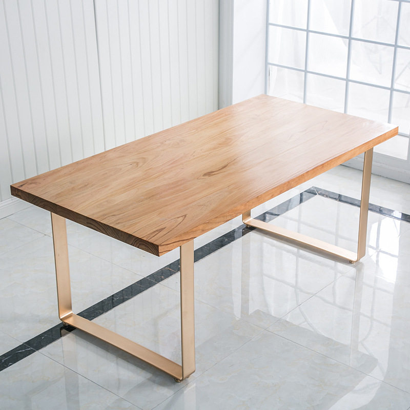 Nordic household solid wood dining table and chairs Simple iron computer table dining room cafe table furniture