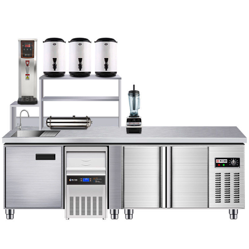 Milk Tea Shop Equipment Full Commercial Water Bar Drink Store Stainless Steel Operation Table Tea Refrigeration Worktable Customized