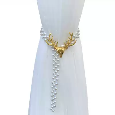 Nordic metal curtain strap elk head pearl rope stretch creative adhesive hook curtain buckle non-one-pair decoration