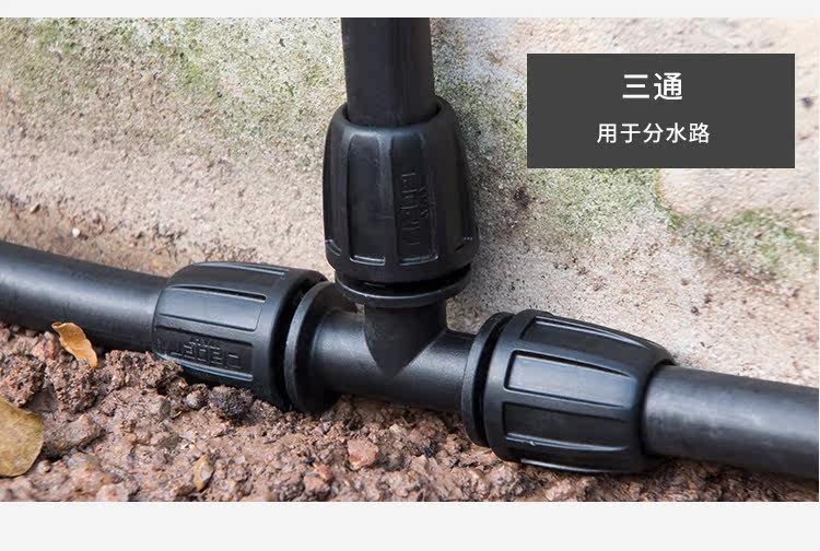 16PE pipe lock three pass through the corner of the corner of the corner of the greenhouse gardening automatic watering micro spray irrigation accessories