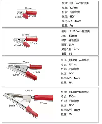 Pure copper opening 5mm10mm20mm30mm alligator clip wire clip Large medium with 4mm jack High voltage test clip