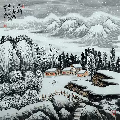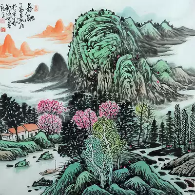 Chinese painting famous artist Zhou Qinbo Shanshui trough spring, summer, autumn and winter, a set of gold hammer treasure into auction H764