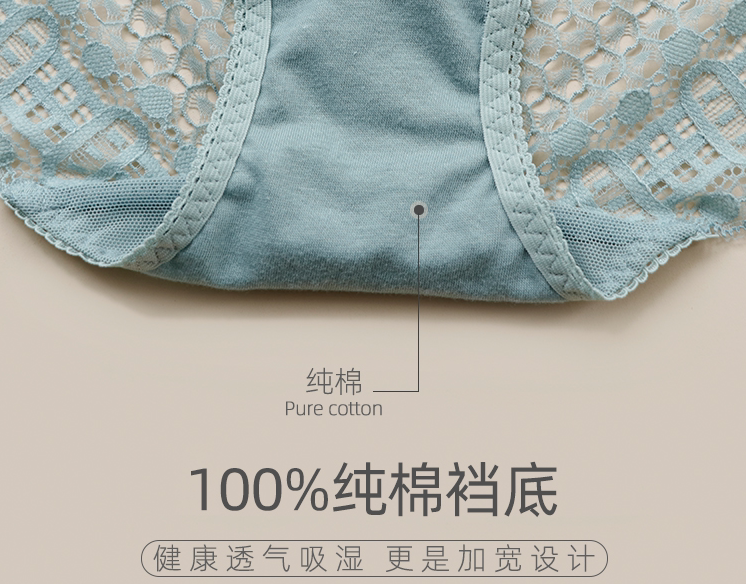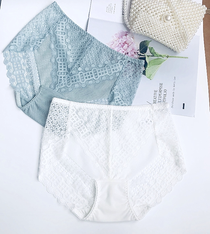Summer high waist Underpants female lace Sexy web yarn thin perspective Increase Code pure cotton crotch No-scratches triangular pants Fat MM