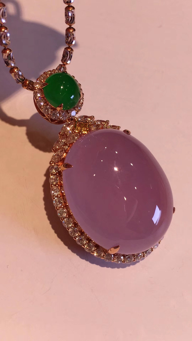 Natural A cargo ice egg face jadeite pendant violet jade Guanyin jade Buddha Gong Ruyi Myanmar 18K gold inlay