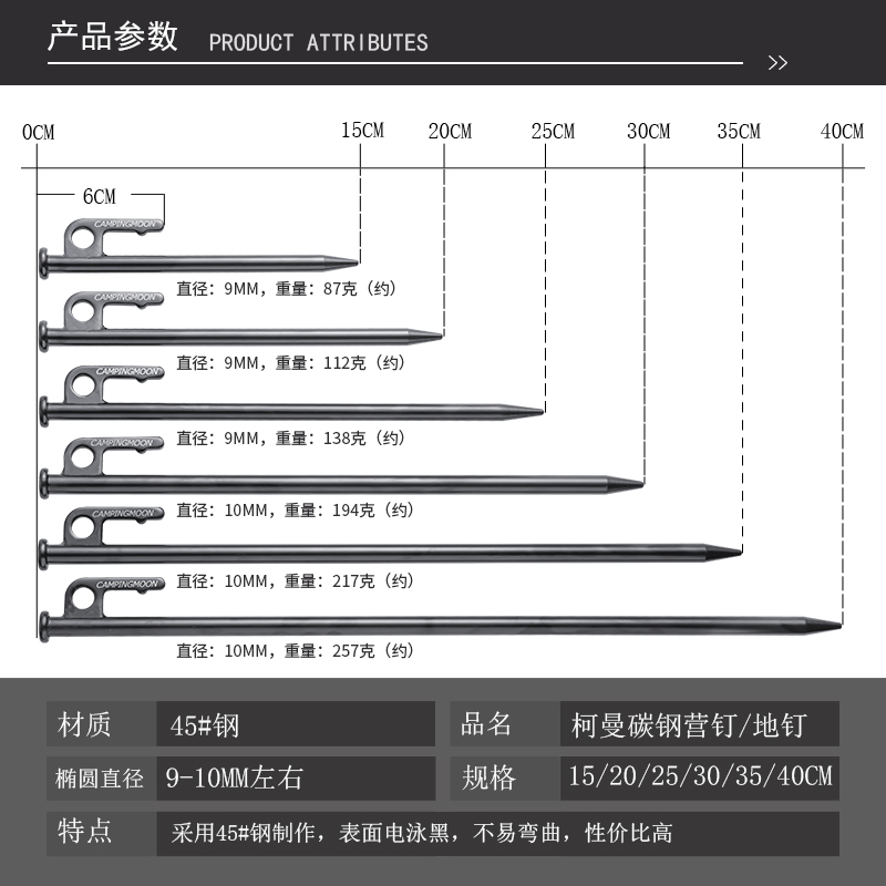 Kirman Carbon Steel Outdoor Beach Tent Nail Skyline Windproof Rope to Tent Stainless Steel Plus Coarse Fixed Ground Nails
