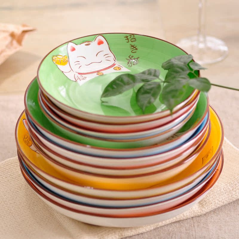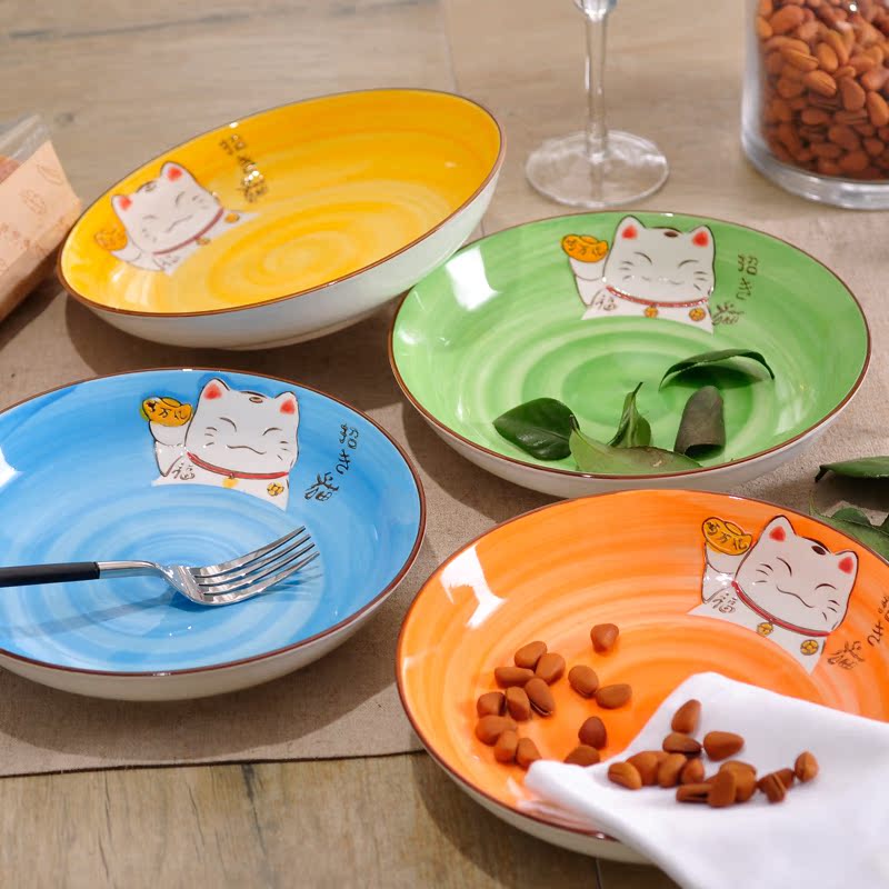 Property Cat Home Day Style Ceramic Dinner Plate Plate Fish Pan Oval Disc Creative Cute Cartoon Cutlery Hand-painted