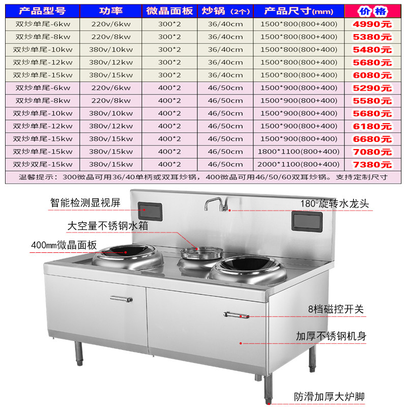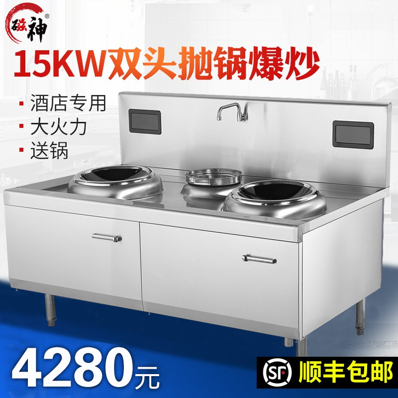 Commercial induction cooker concave restaurant high-power induction cooker 15kw double-head electric frying stove canteen cauldron stove electric stove