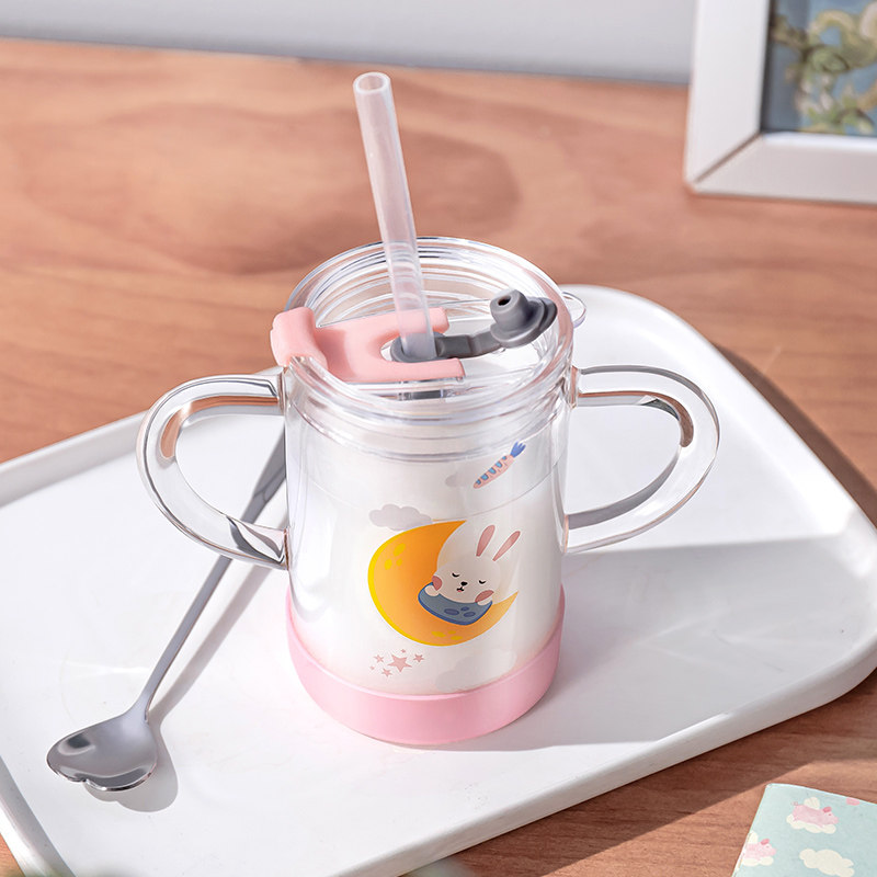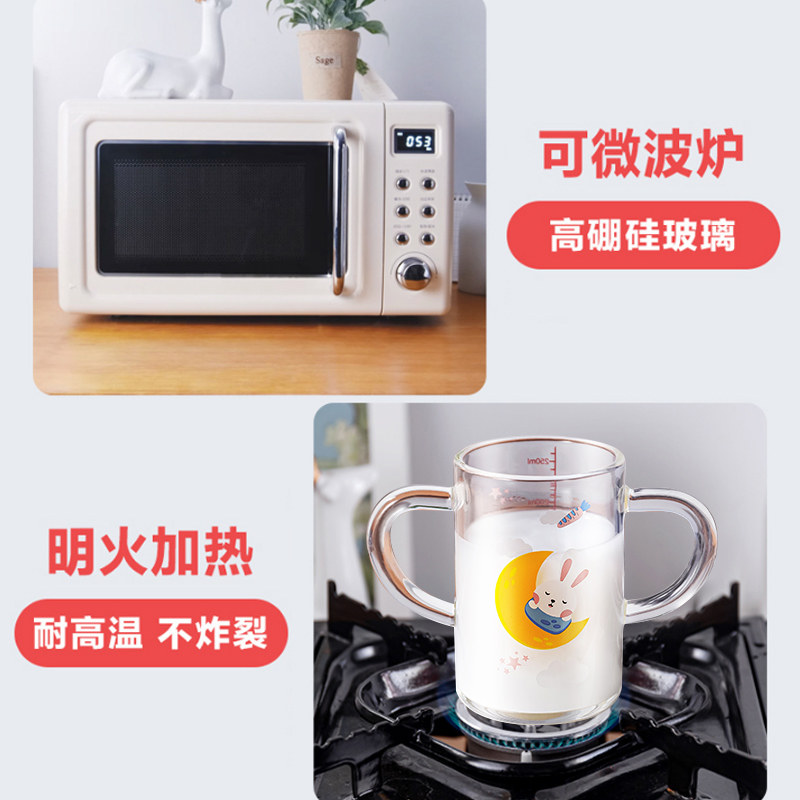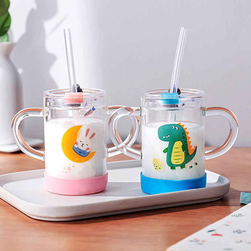 Home Children Double Handle Flush Milk Cup Scale Cups with Breakfast Straw Glass Water glass with lid microwave