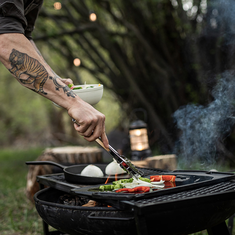 American BAREBONES outdoor picnic barbecue Cast iron double-sided multi-purpose stainless steel non-stick multi-purpose frying oven