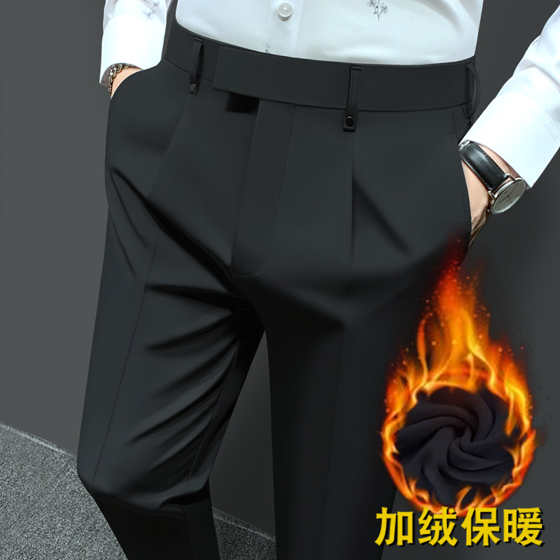 Casual Western pants men's sashimi long pants Han version of autumn winter clothing 90% Business plus suede thick, bronzed with little feet-Taobao