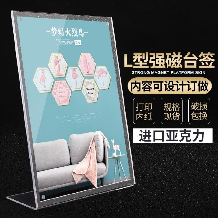 a4 desktop Acrylic Desk Card Standing Card a5 Label Price Brand Vegetable Goods Show Shelf L Type Terrace Magnet Milk Tea Shop Sign