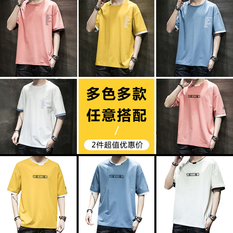Summer short-sleeved men's t-shirt trend half-sleeved loose cotton Korean men's T-shirt bottoming shirt summer tide brand