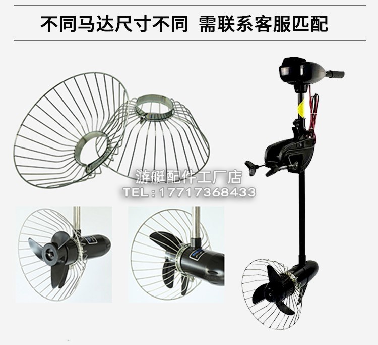 Flicker12V24V marine propeller electric motor anti-crash wound stainless steel mesh hood propeller protective sleeve