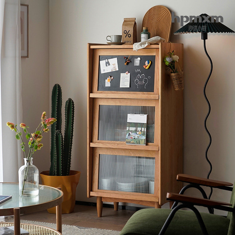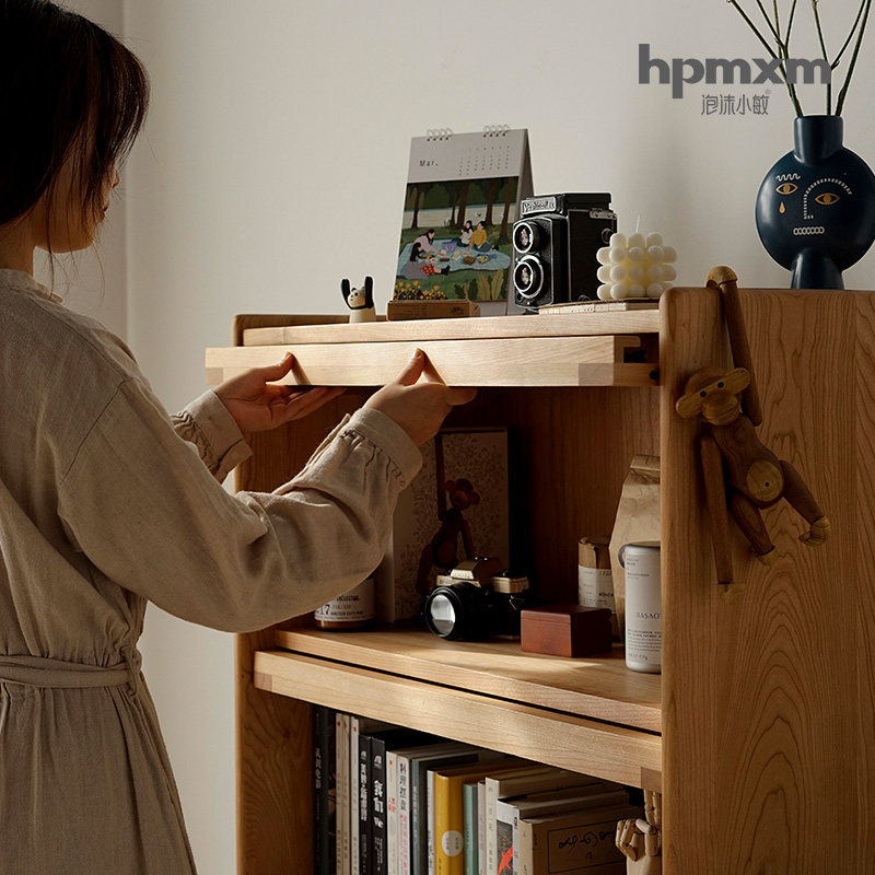Nordic Solid Wood Bookcase Living Room Small House Cherry Wood Magazine Cabinet