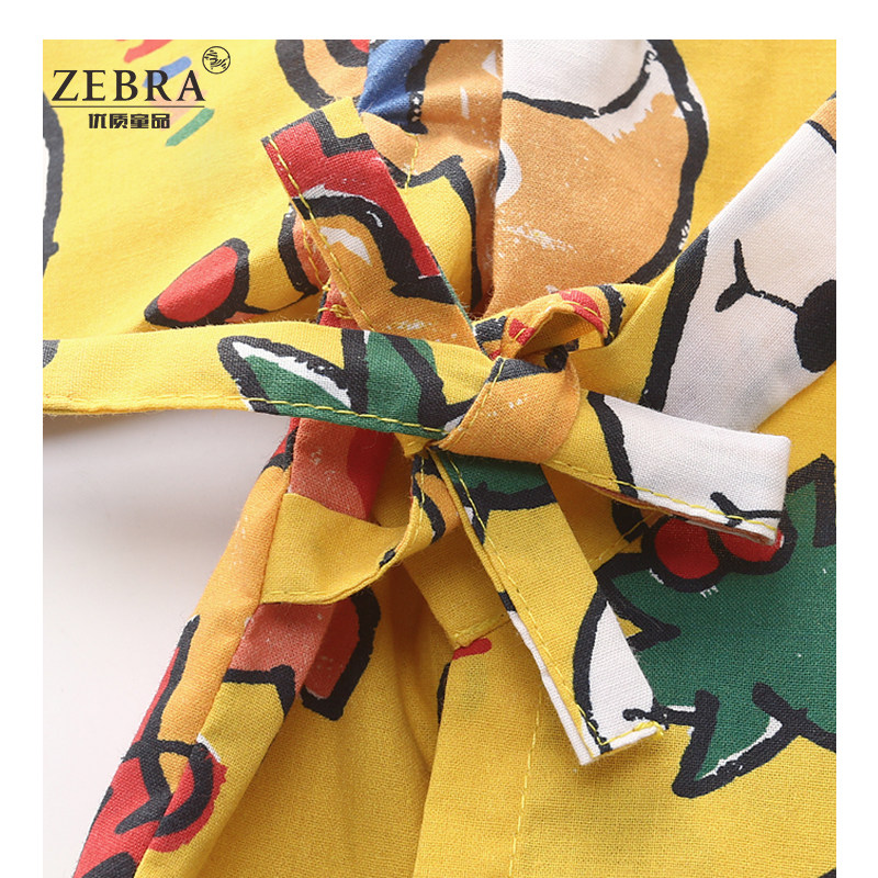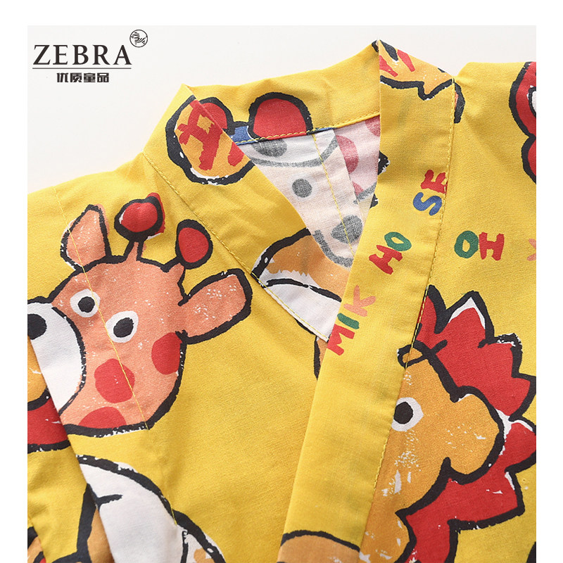 Japanese cute cartoon print children's pajamas summer baby home clothes two-piece cotton boys and girls kimono