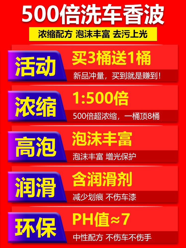 (Buy 3 Fat 4) 500 times High Bubbles Car Wash Shampoo CAR WASH LIQUID WATER WAX DECONTAMINATION UP LIGHT FOAM CLEANING AGENTS
