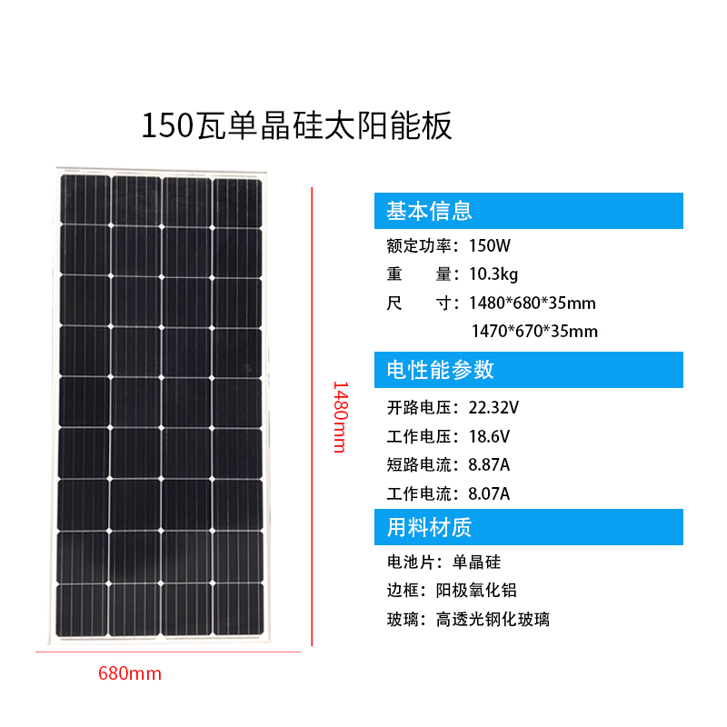 75W9V Two strings 150W polycrystalline 90W9v Two strings 180W single crystal 150W 150W 1480 * 680MM150W polycrystalline 1480 * 680 35M * 35M * 35M