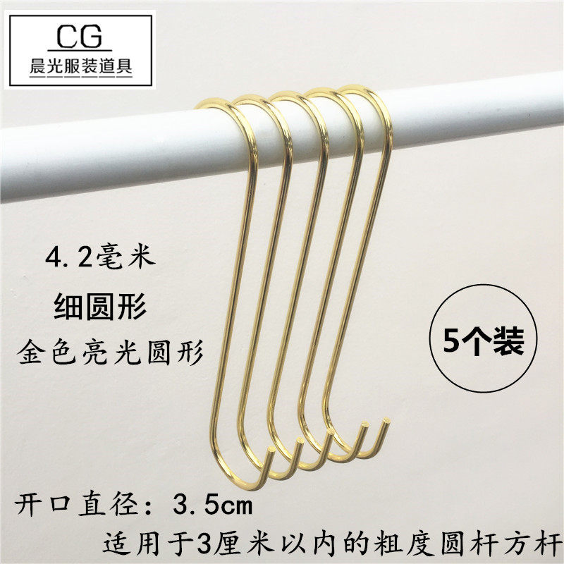 Clothing store adhesive hook S HOOK gold fine circular coat hook stainless steel hook clothing adhesive hook S hook new don't paint