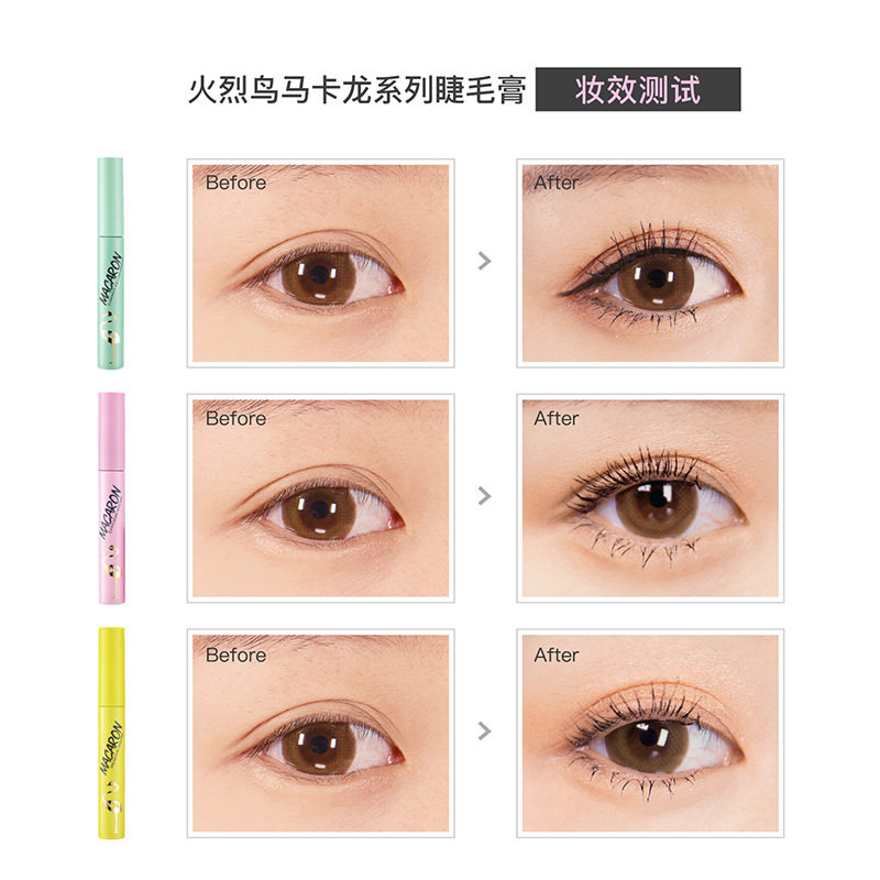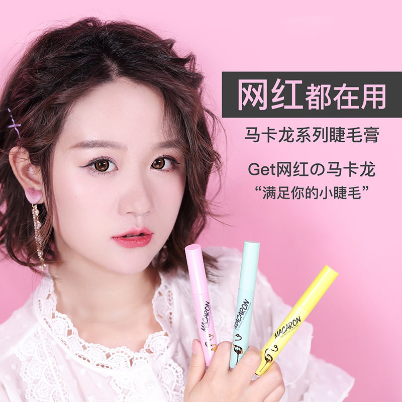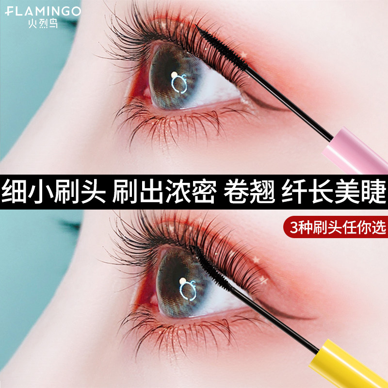 Flamingo mascara female small fine brush head waterproof slender curling lengthening dense not smudged macaron to send eyelash curler