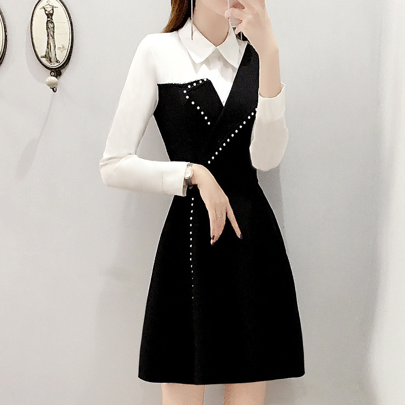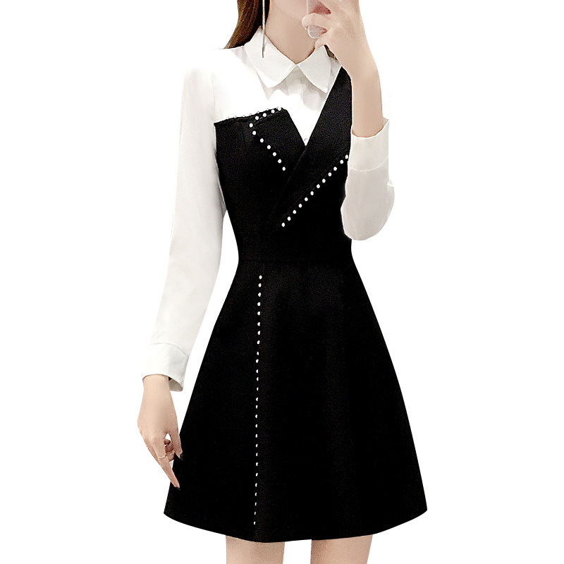 Small dress early spring 2021 shirt temperament small black skirt waist thin short long-sleeved skirt women's autumn
