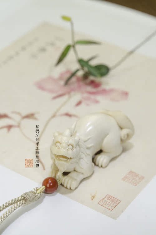 Purple Clouds Sandalwood Pure Natural mammoth ivory Mammoth Ivory Pure Handmade Boutique Carve of the Beast Handlebar Piece