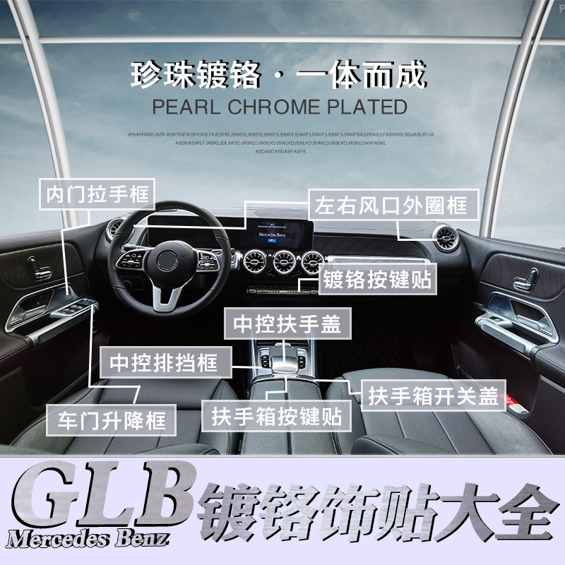 Central control Hand-control large row-stop frame glass lifting frame inner door handle frame seat adjustment cover 2 pieces fitting head rest button press frame backrest mesh pocket decorative frame armrest box switch cover (3 pieces fit)