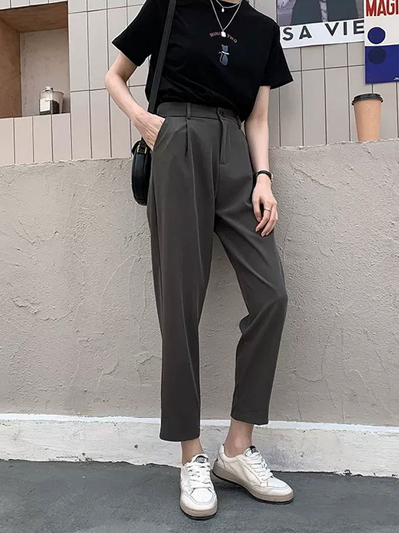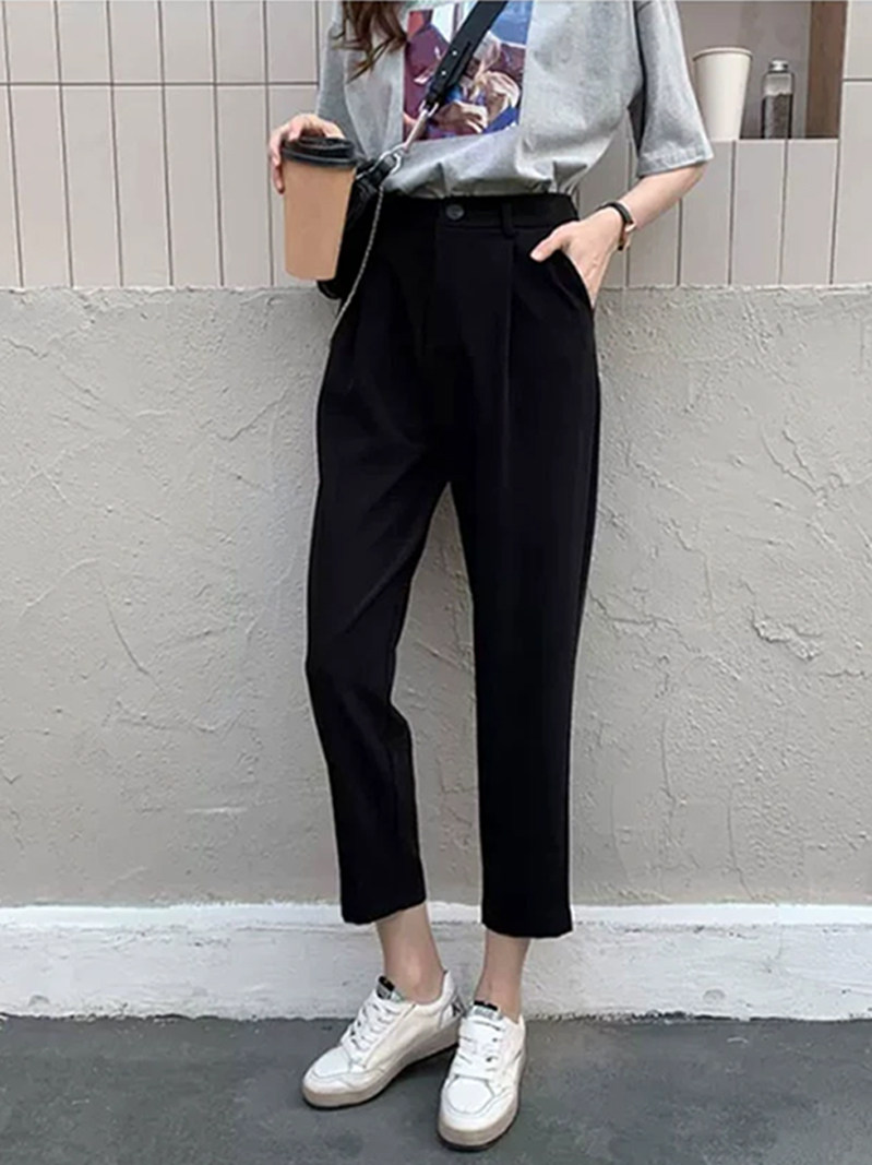 Suit pants women's autumn and winter Korean retro high waist slimming smoke pipe pants commuting nine points small feet Harlan carrot pants