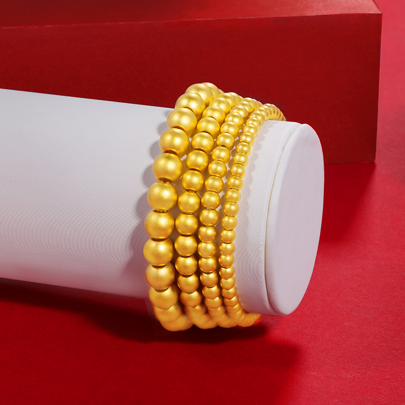 Ancient Law Gold Handmade Woman 999 Foot Gold Fu Character Pendant Small Gold Pearl 24k Pure Gold Transfer Beads Handstring Hard Gold Bracelet
