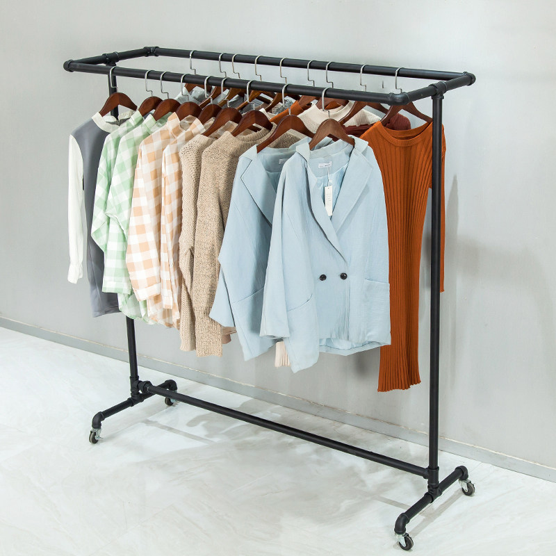 Brief Clothing Store Show Shelf Arrival Type Double Bar Portal Water Pipe Hung Hanger Mall Special Removable with wheels