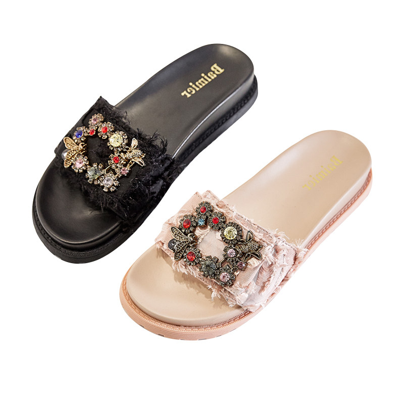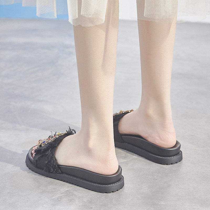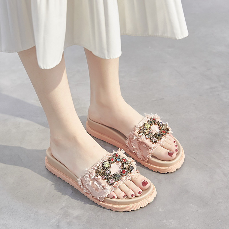 2022 spring rhinestone luxury slippers women's summer wear fashion wild Net red super fire thick bottom cool drag ins tide