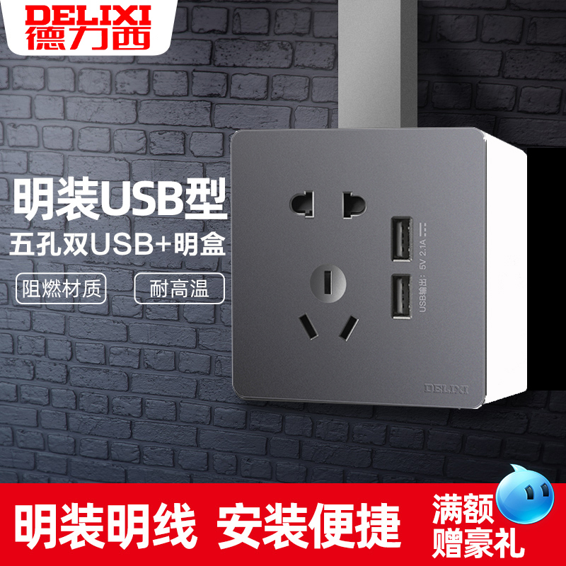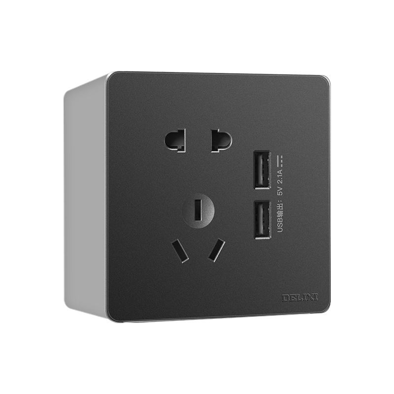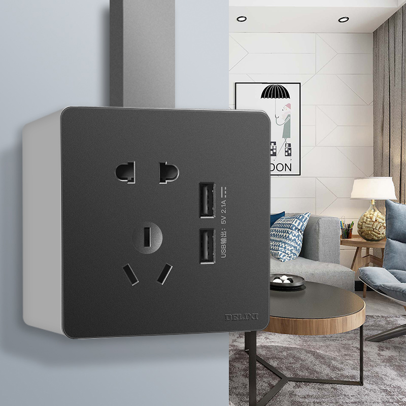Delixi 5 five - hole with USB socket panel wall with black gray charging 86 intelligent fast charging line