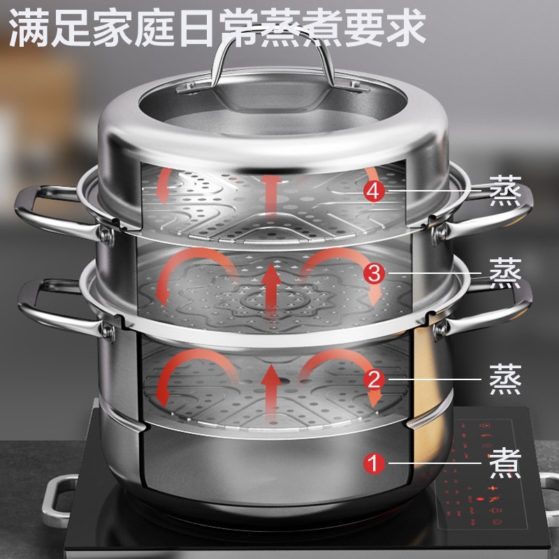 Conbach stainless steel steamer 304 thickened Home Three layers Large Number of large capacity Bottoms Steamed Steamed Buns Pan 32cm