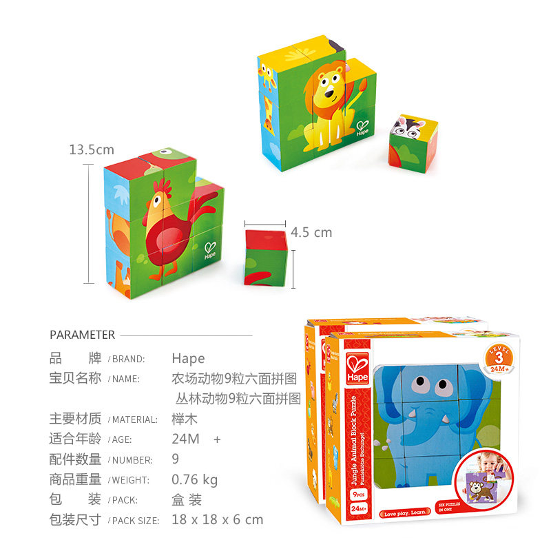 German Hape Triple Order -9 Grain Six-Face Puzzle Baby Children Puzzle Toy Creative Male Girl Animal Puzzle-Taobao