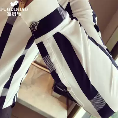 Rich bird summer striped shirt men's long sleeve casual shirt slim Korean version trend handsome fashion wild youth