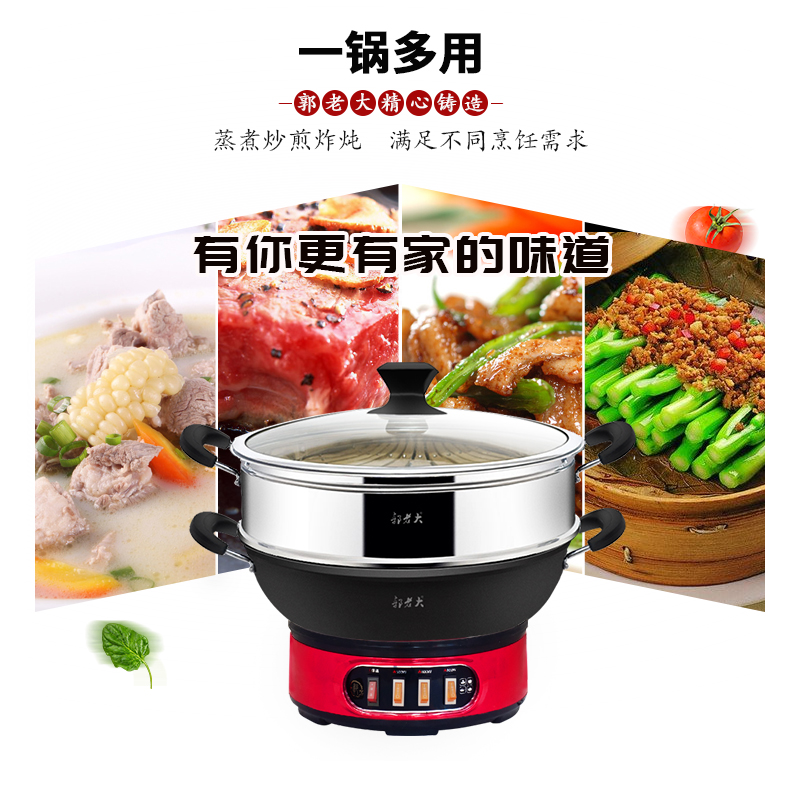 Guo Boss cast iron electric frying pan Home Multi-functional frying pan cooking integrated pan plug-in electric hot electric boiler thickened