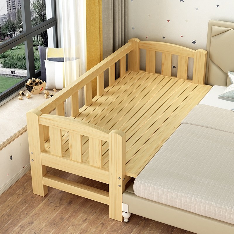 Solid wood children's bed with guardrail Boy girl Princess single small bed widened bedside baby baby splicing large bed