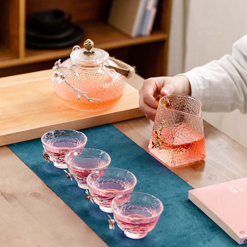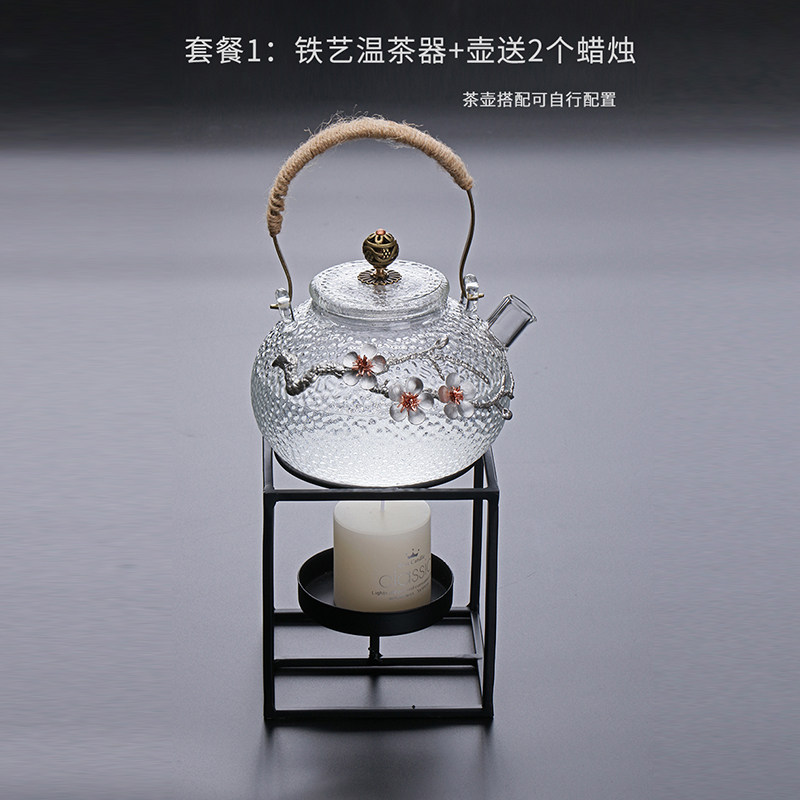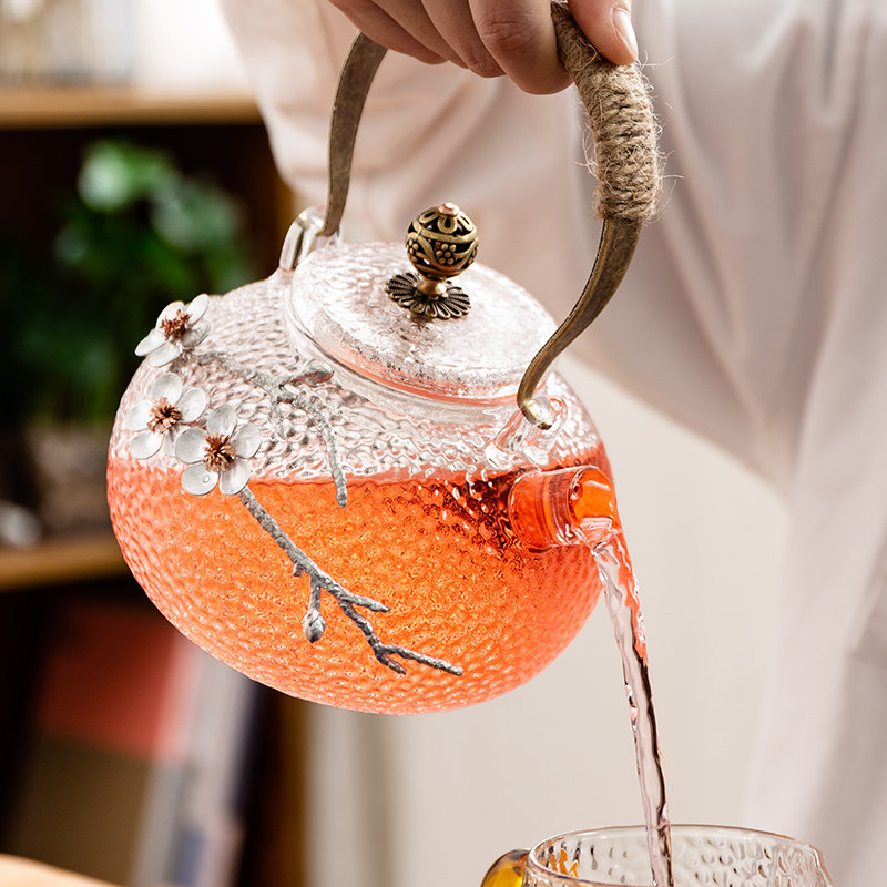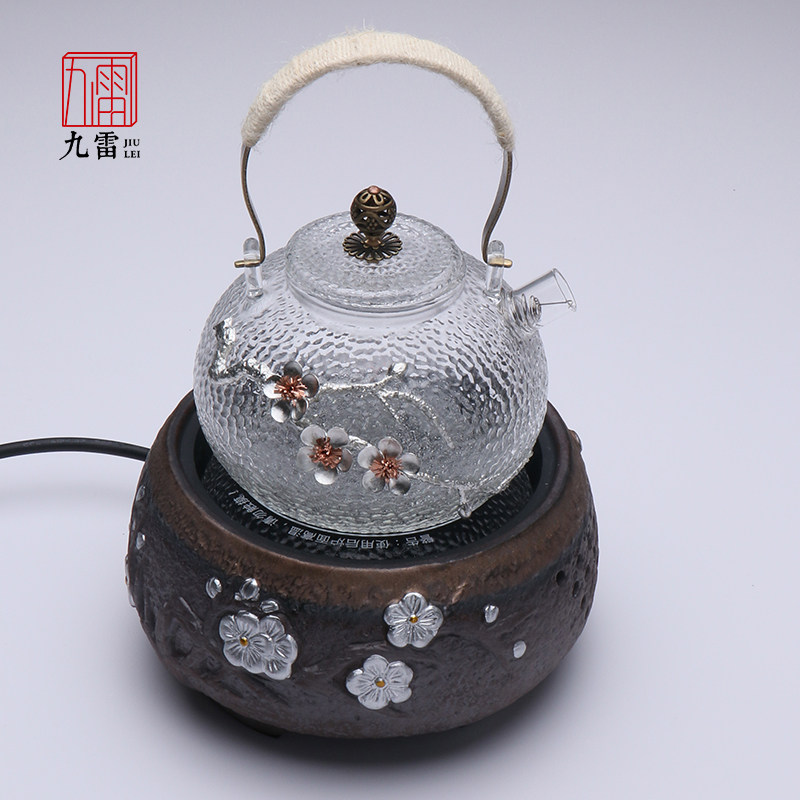 Japanese-style plum hammer pattern heat-resistant glass pot beam pot flower teapot retro black crystal furnace special teapot kettle