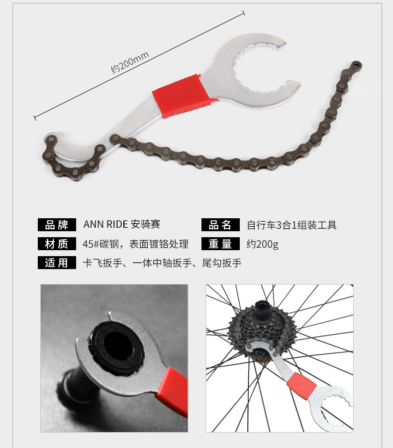 Flywheel disassembly chain wrench three-in-one tail hook chain wrench repair of four pieces of cover repair five pieces