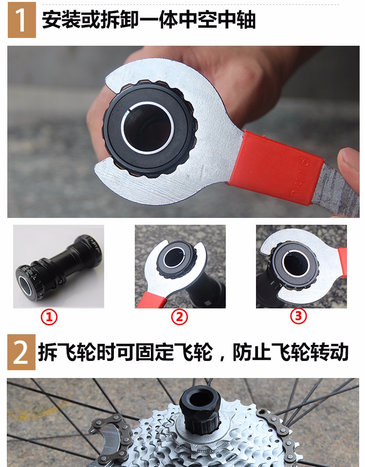 Bicycle integrated middle shaft fixed wrench clamp-type flywheel disassembly wrench tail hook wrench mountaineering car tool suit