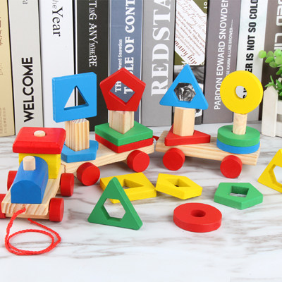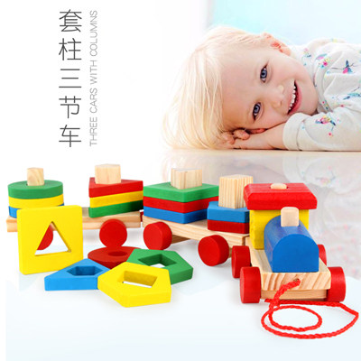 Wooden early teach 1-2-3-year-old puzzle digital train toy baby wood assembled building block male girl intellect