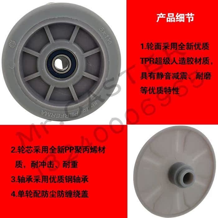 3 inch 4 inch 5 inch silent rubber single wheel TPR artificial rubber tablet driver cart bearing silent silent silent silence wheel