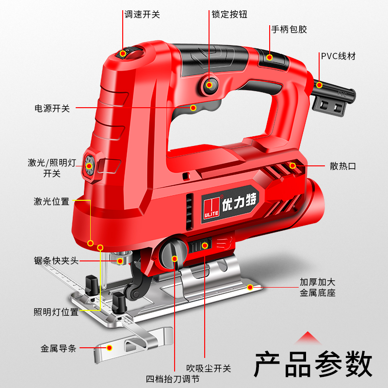 Uliot electric curve saw small multifunctional cutting machine wood electric saw pull-in flashlight according to wire saw tool
