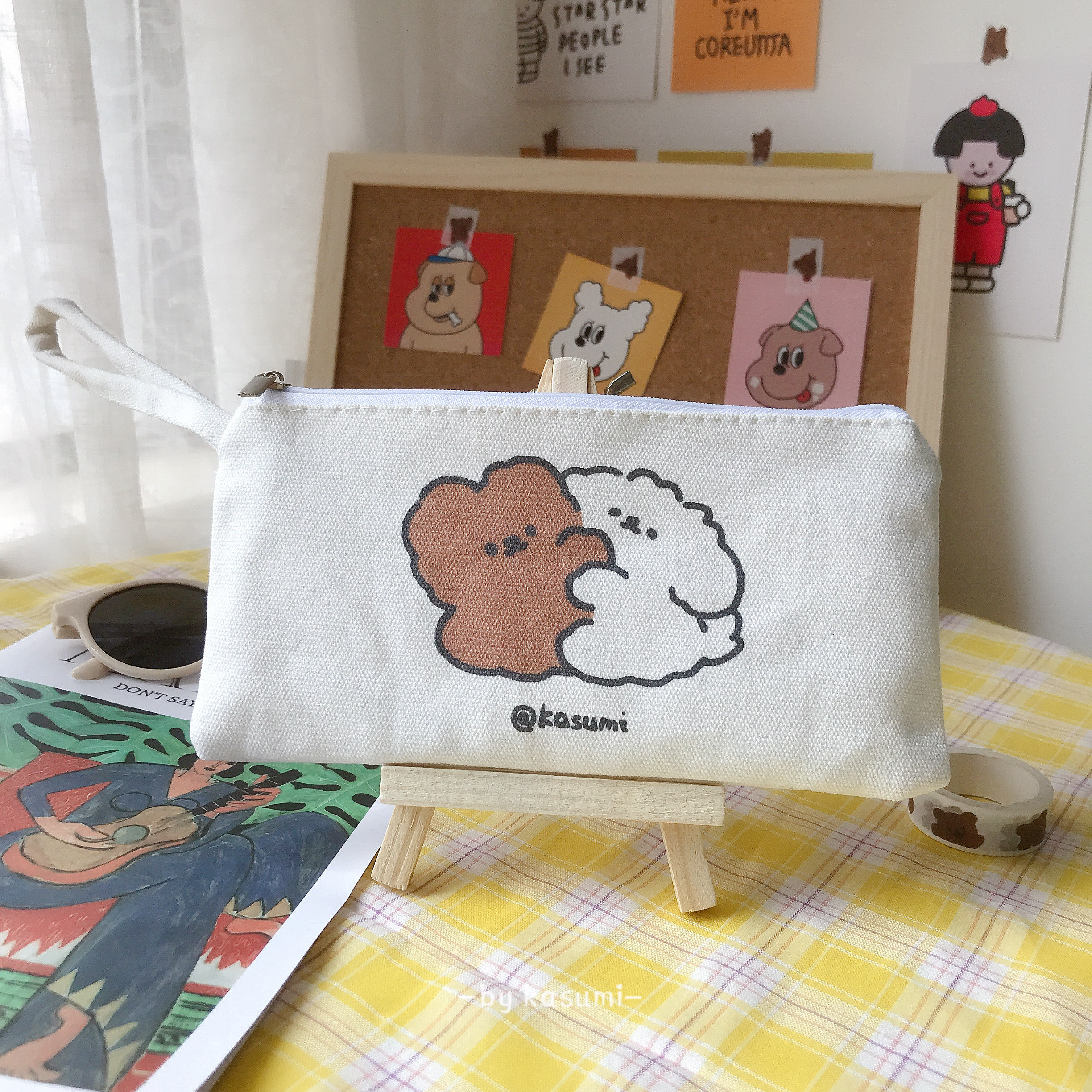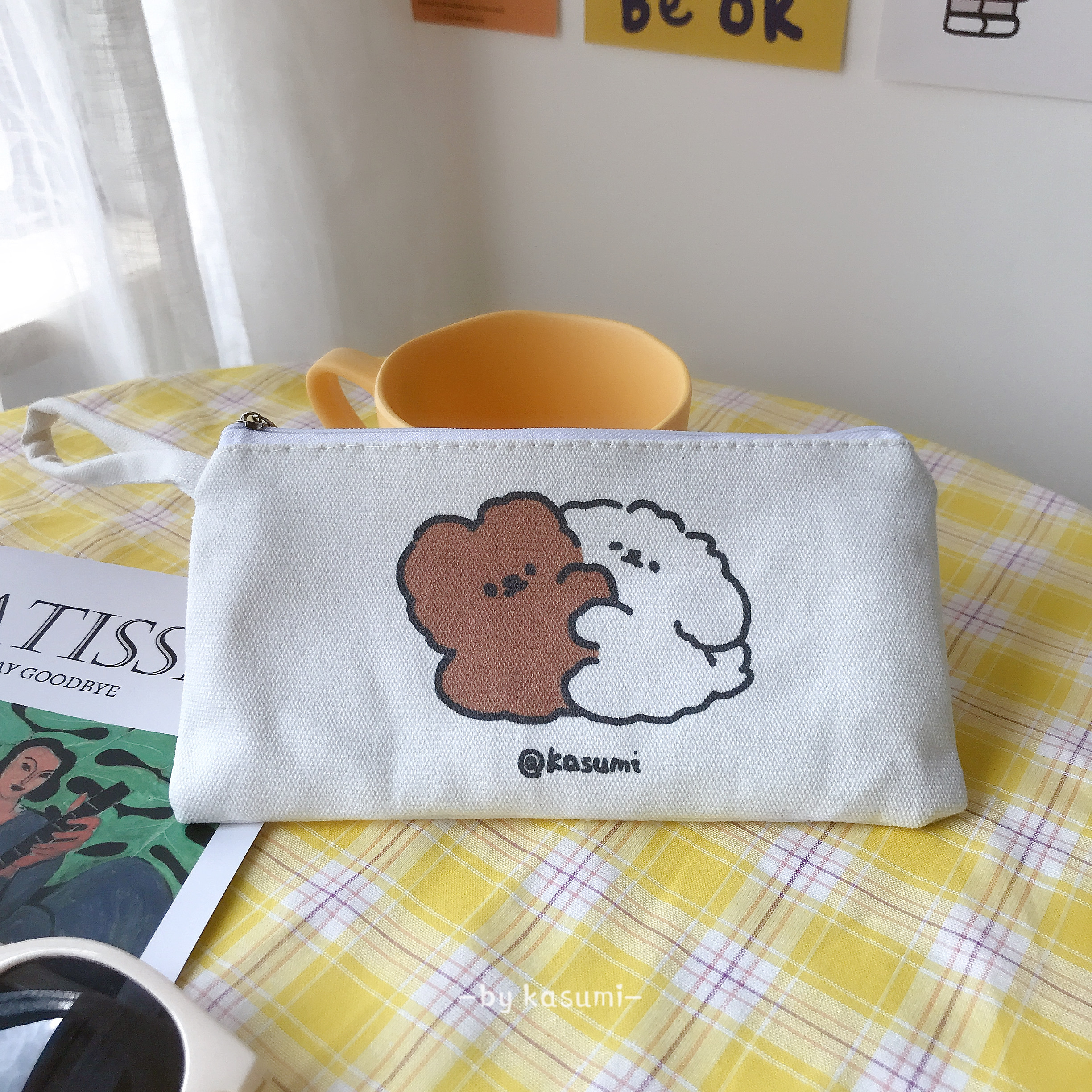 kasumi* original homemade ins cute Japanese Harajuku style canvas portable makeup brush stationery storage bag pencil case