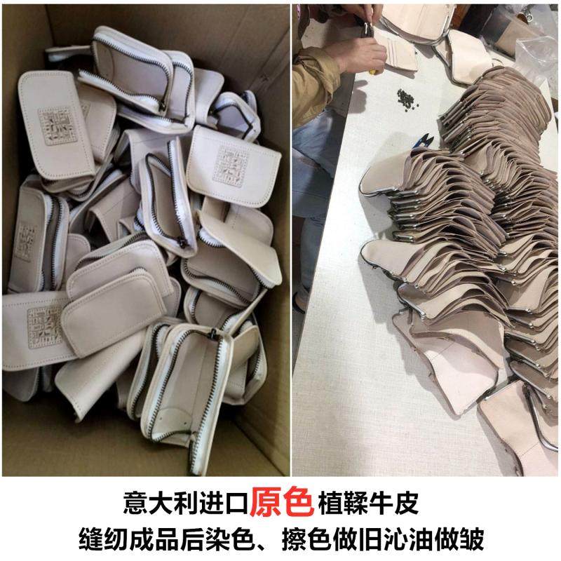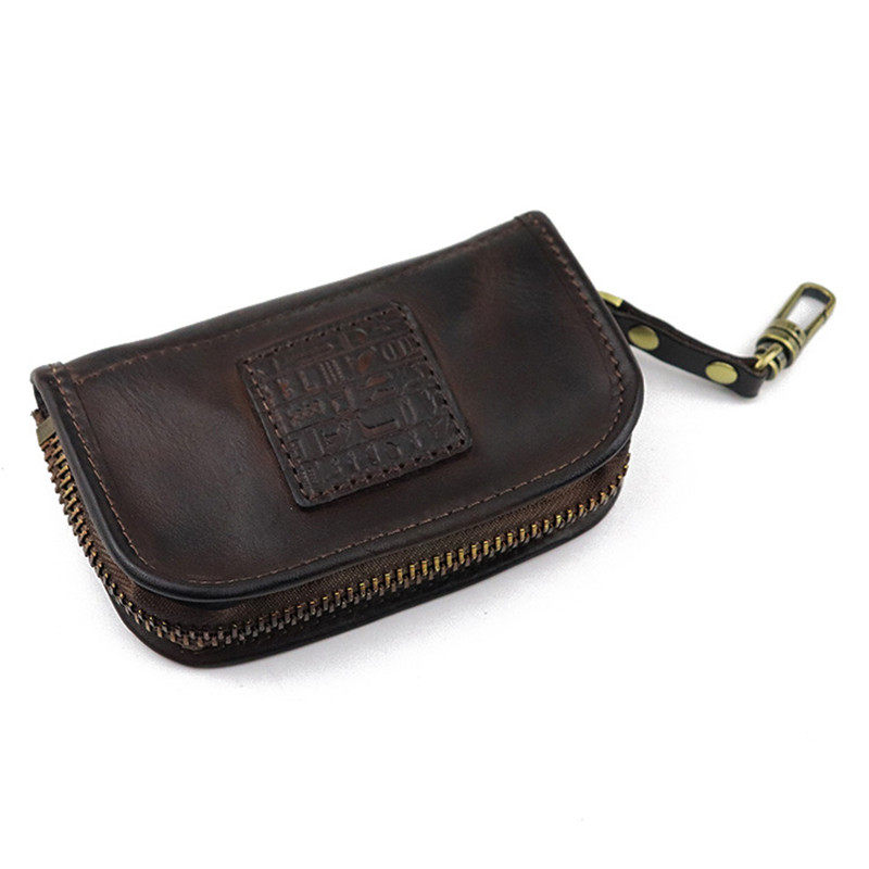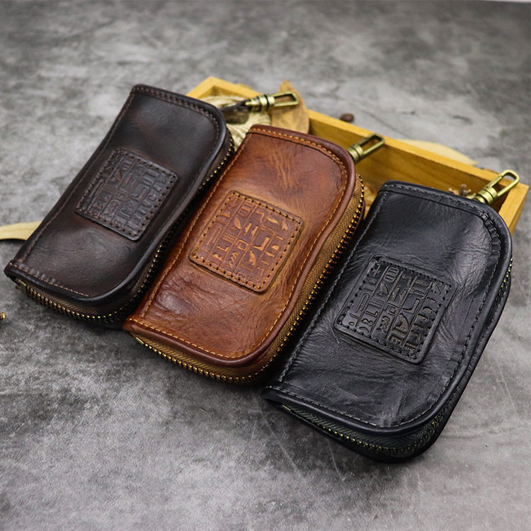 Handcrafted Color Qin Oil As Old Plant Tannic Cow Leather Multifunction Large Capacity Retro Portable Containing Bag Hanging Bag Key Bag