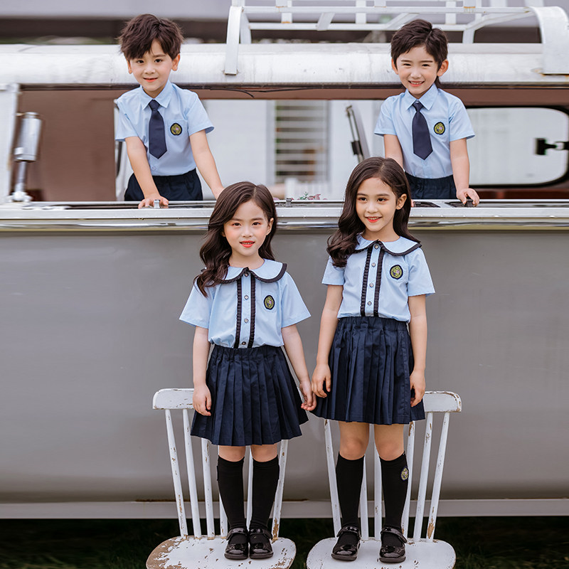 Kindergarten Garden Suit Inellen Wind Summer Clothing New Short Sleeves Blue Shirt Suit Children Class out of school uniforms for elementary school students