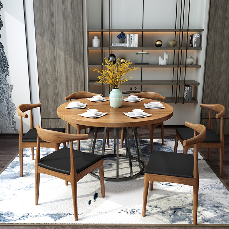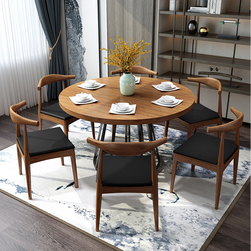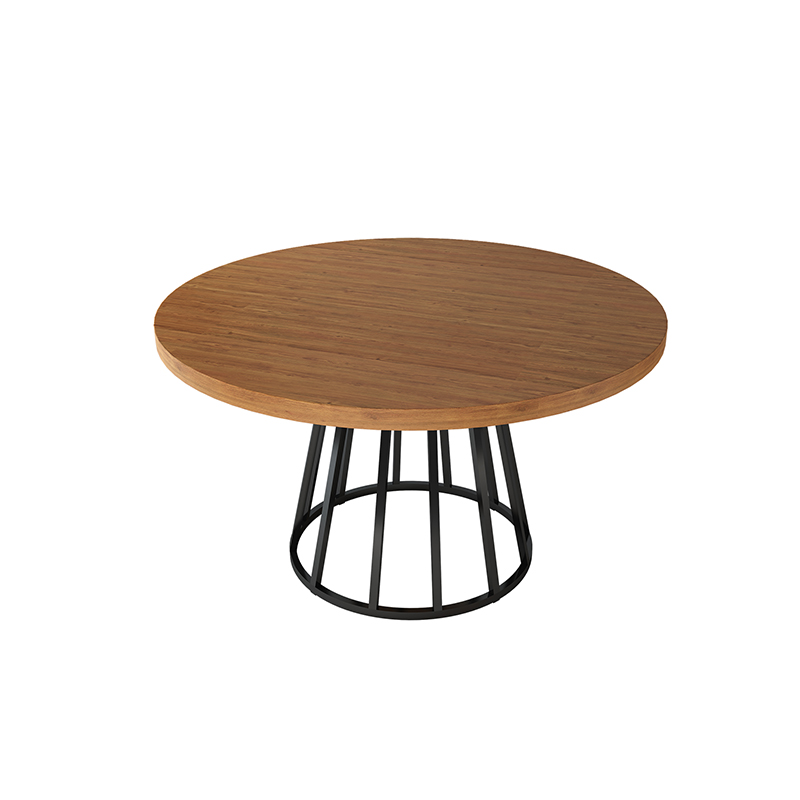 Industrial style solid wood round dining room dining table hot pot table canteen restaurant table and chair combination iron retro round table