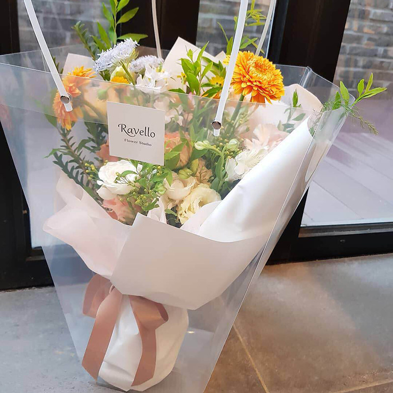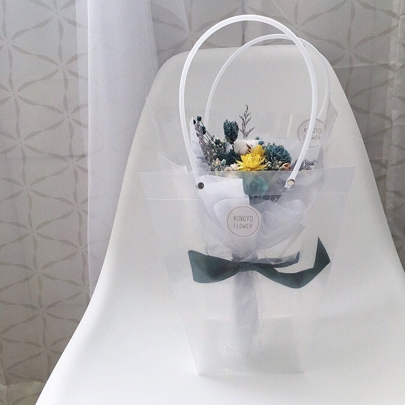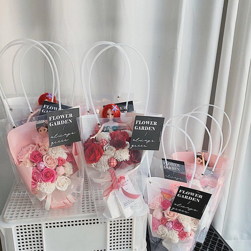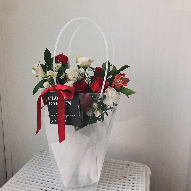 Transparent pvc plastic trapezoidal square bouquet packaging bag Net red gift bag Dessert cake hand bag portable